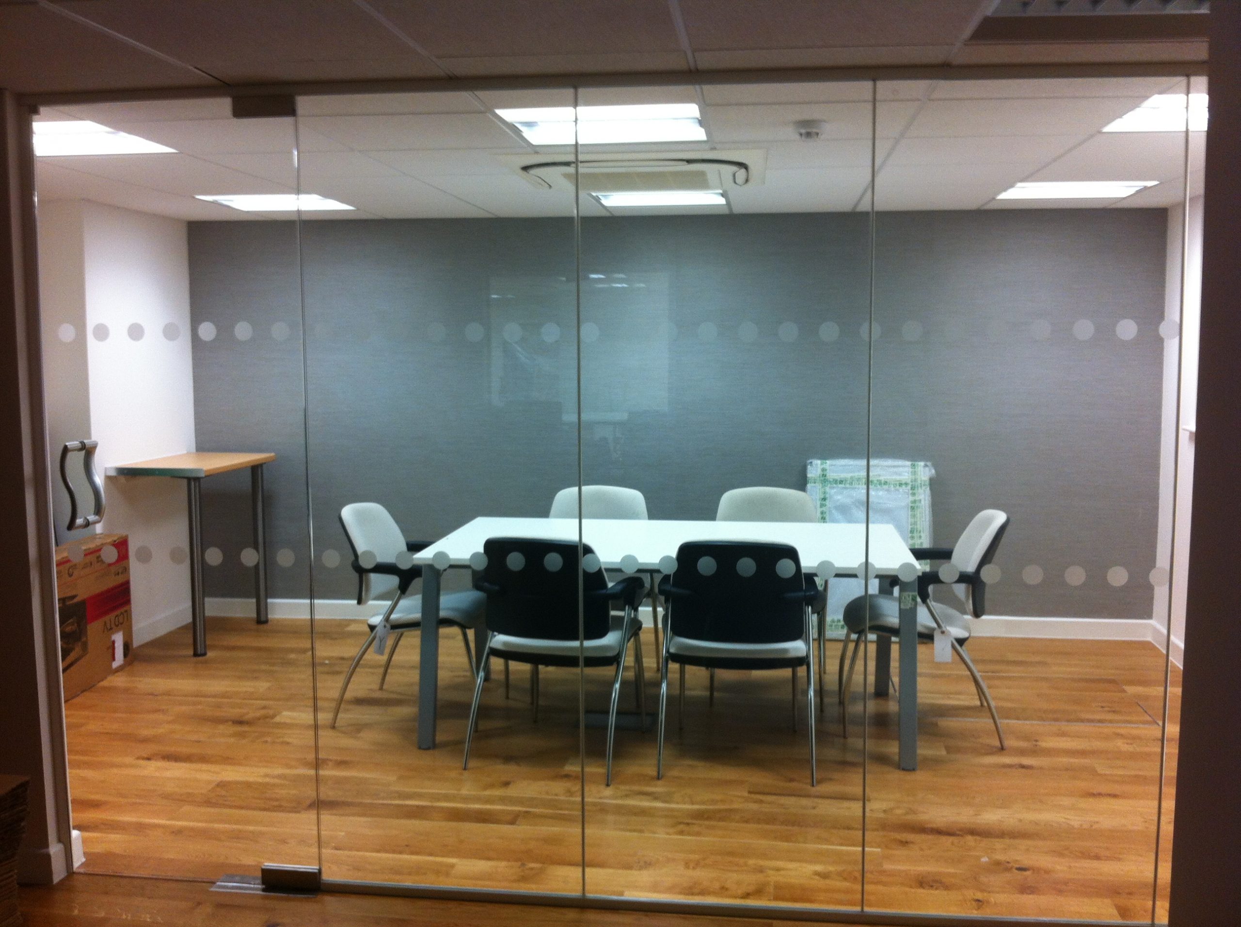 Your office partition glass divides each office from the next, so why not create a pattern or choose from a selection of ready made designs for your manifestation graphics and use these to add some character to your work environment, add a focal point, while at the same time adding privacy to those meeting rooms.
