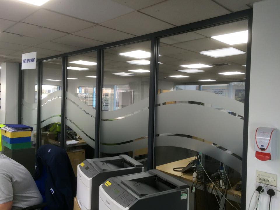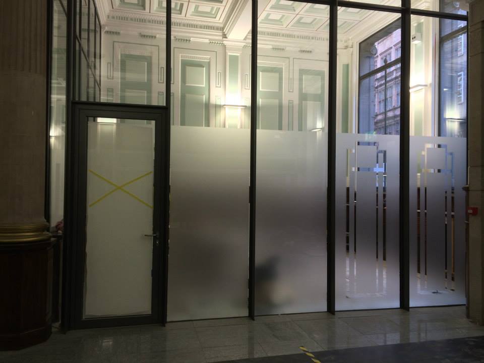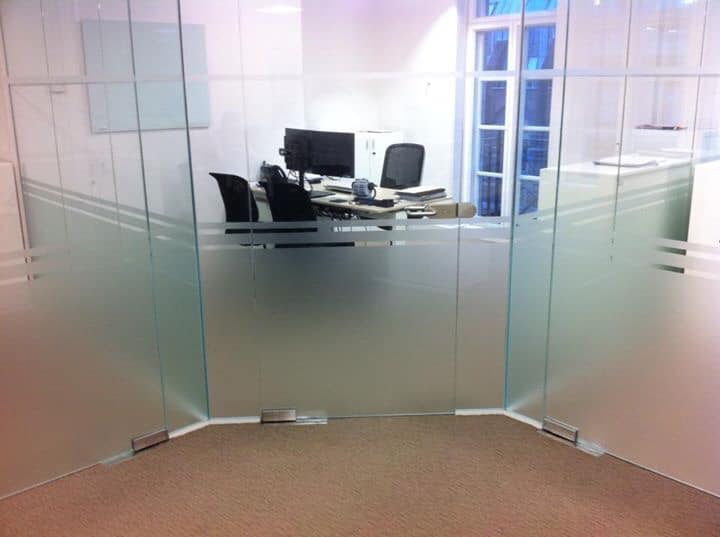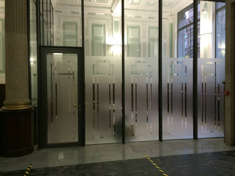 The internal partition glass could be frosted or etched – choose from full frost to a pattern or design, we can mix different films and colours to create eye catching designs, while adding privacy to the level you require.